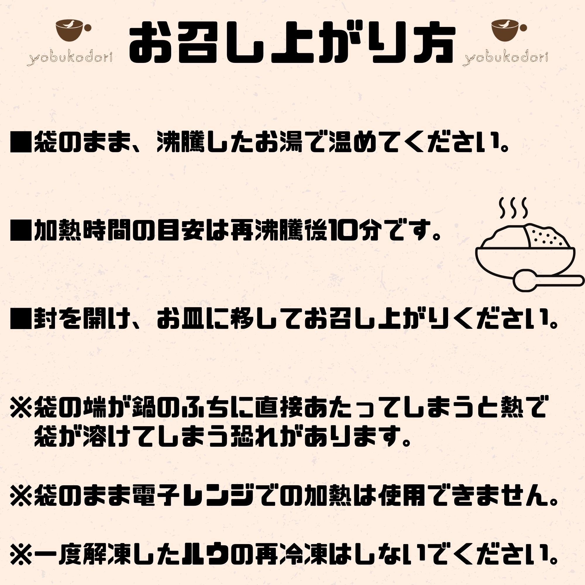【お召し上がり方】袋のまま、沸騰したお湯で温めてください。